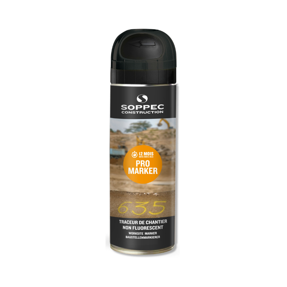 La bombe de peinture chantier non fluorescente PROMARKER s’utilise pour divers travaux de marquage/repérage : voiries, terrassement, canalisations, constructions, installations électriques. Cette peinture de marquage non fluorescente permet de masquer efficacement les marquages.